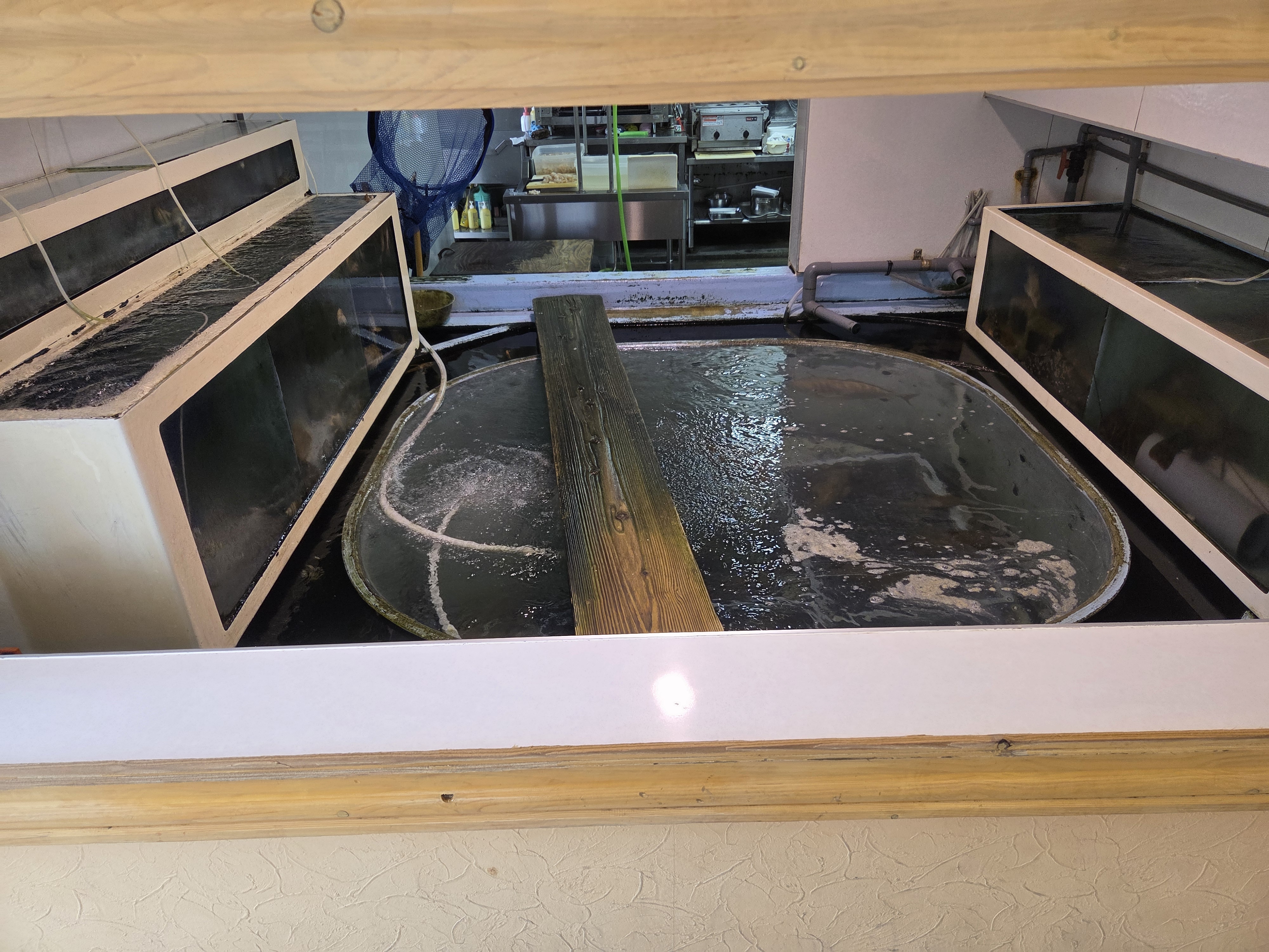Das Mittagessen nahmen wir in einem kleinen Hafenrestaurant ein, wo man sich beim kücheneigenen Aquarium selber überzeugen konnte, ob die Ware frisch war. Sie war frisch, schwamm noch umher und wusste zum Glück nicht, welches Schicksal sie bald ereilen würde. Draussen wurde zu unseren Ehren eine kleine Tanz- und Trommelaufführung abgehalten.