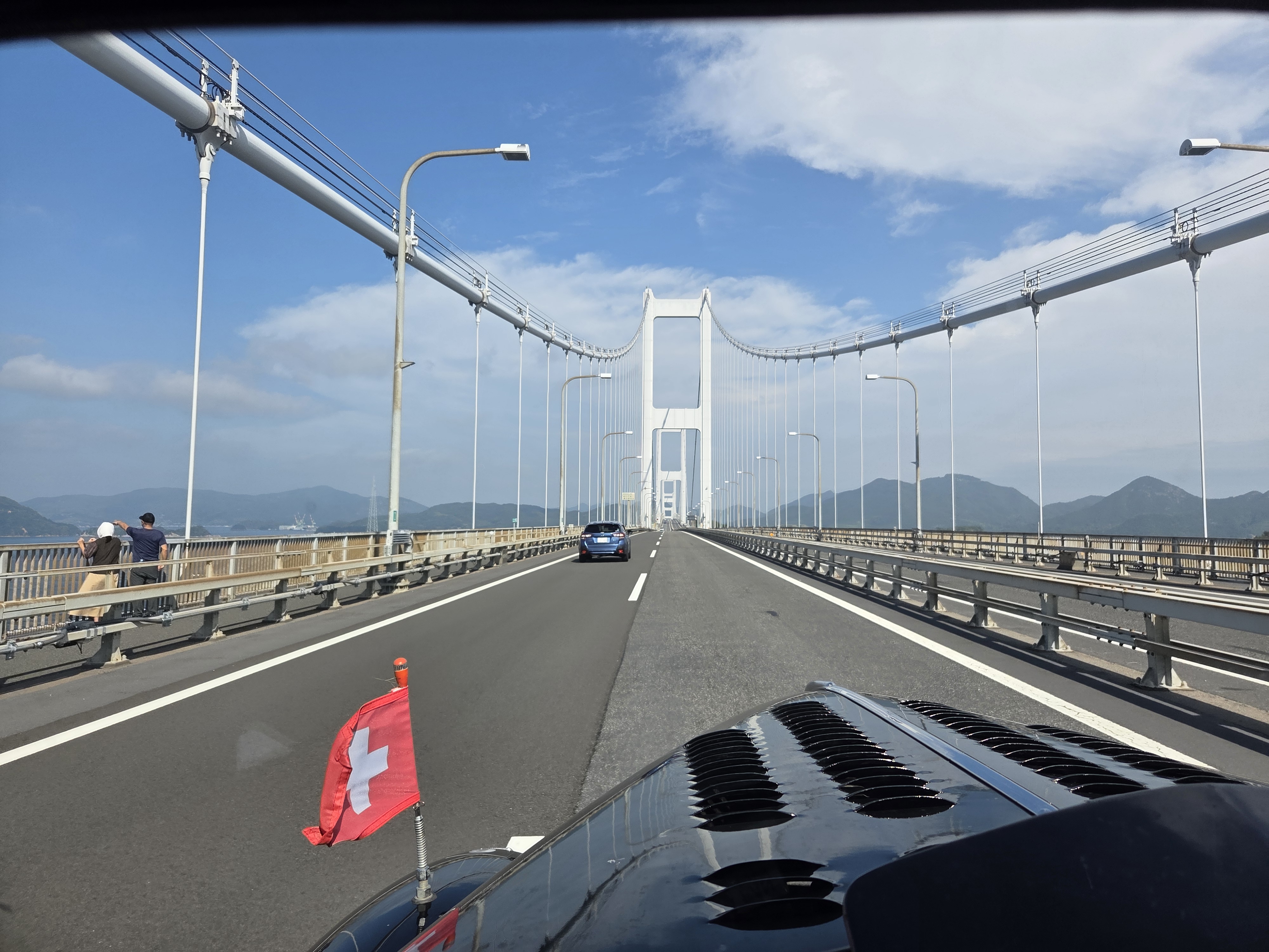 Gestern haben wir die Insel Shikoku, die kleinste der vier Hauptinseln Japans, verlassen und sind über ein imposantes Brückengefüge auf das Festland, resp. die Hauptinsel zurückgekehrt. Den ganzen Tag über war es heiss und feucht, das Klima ist hier weniger angenehm zu ertragen als im Norden von Japan. Vormittags war es bedeckt und teilweise neblig, die Sonne hat sich erst nach dem Mittagessen gezeigt.
