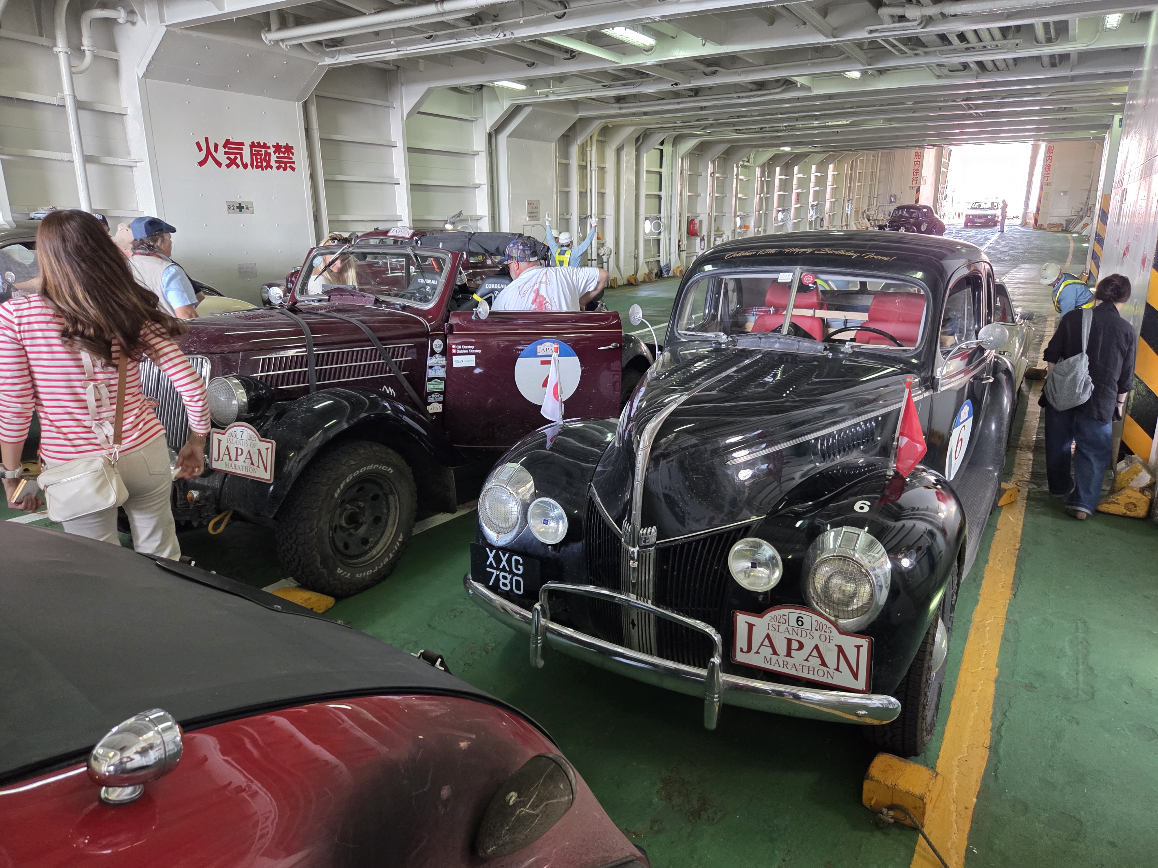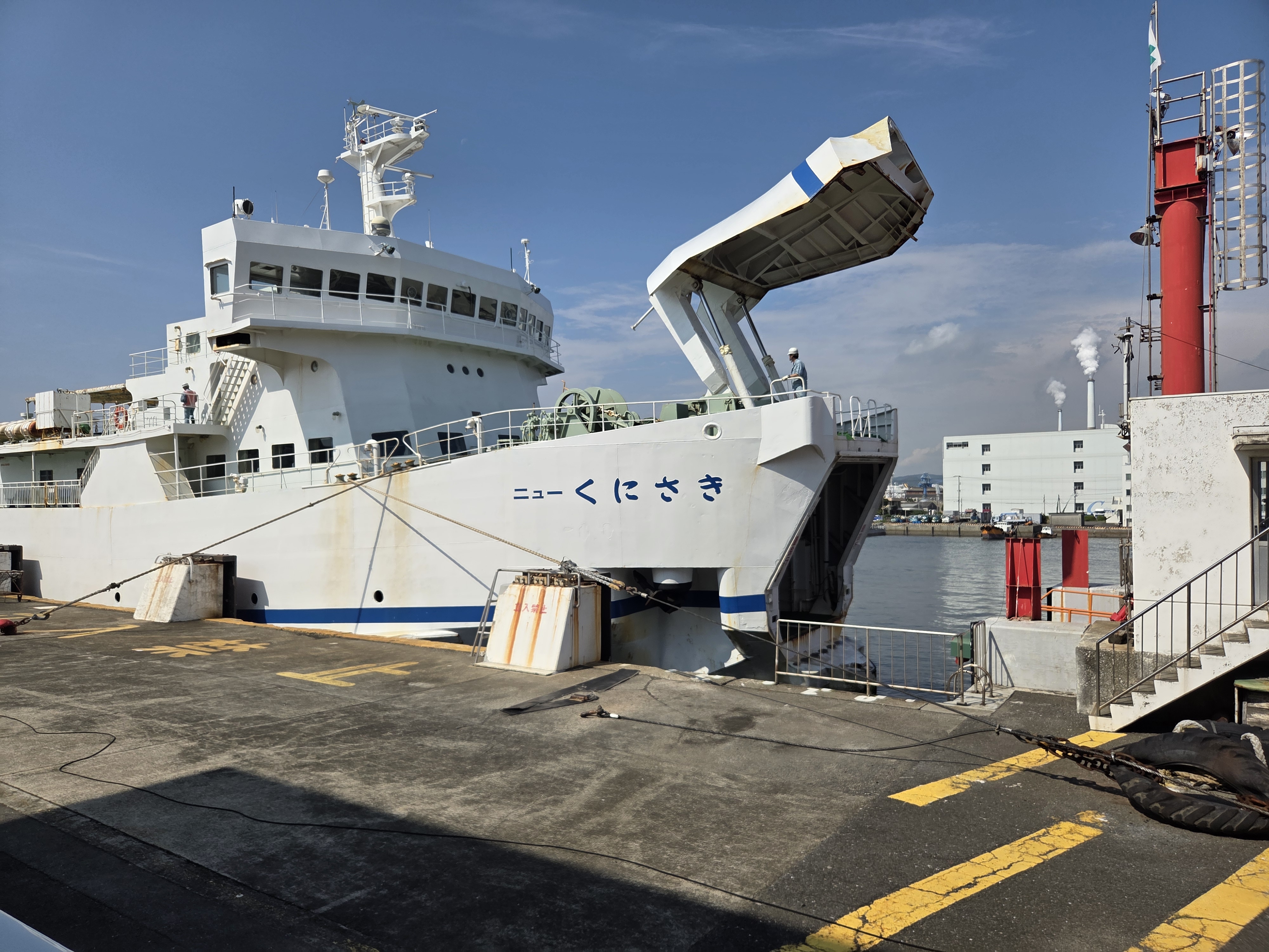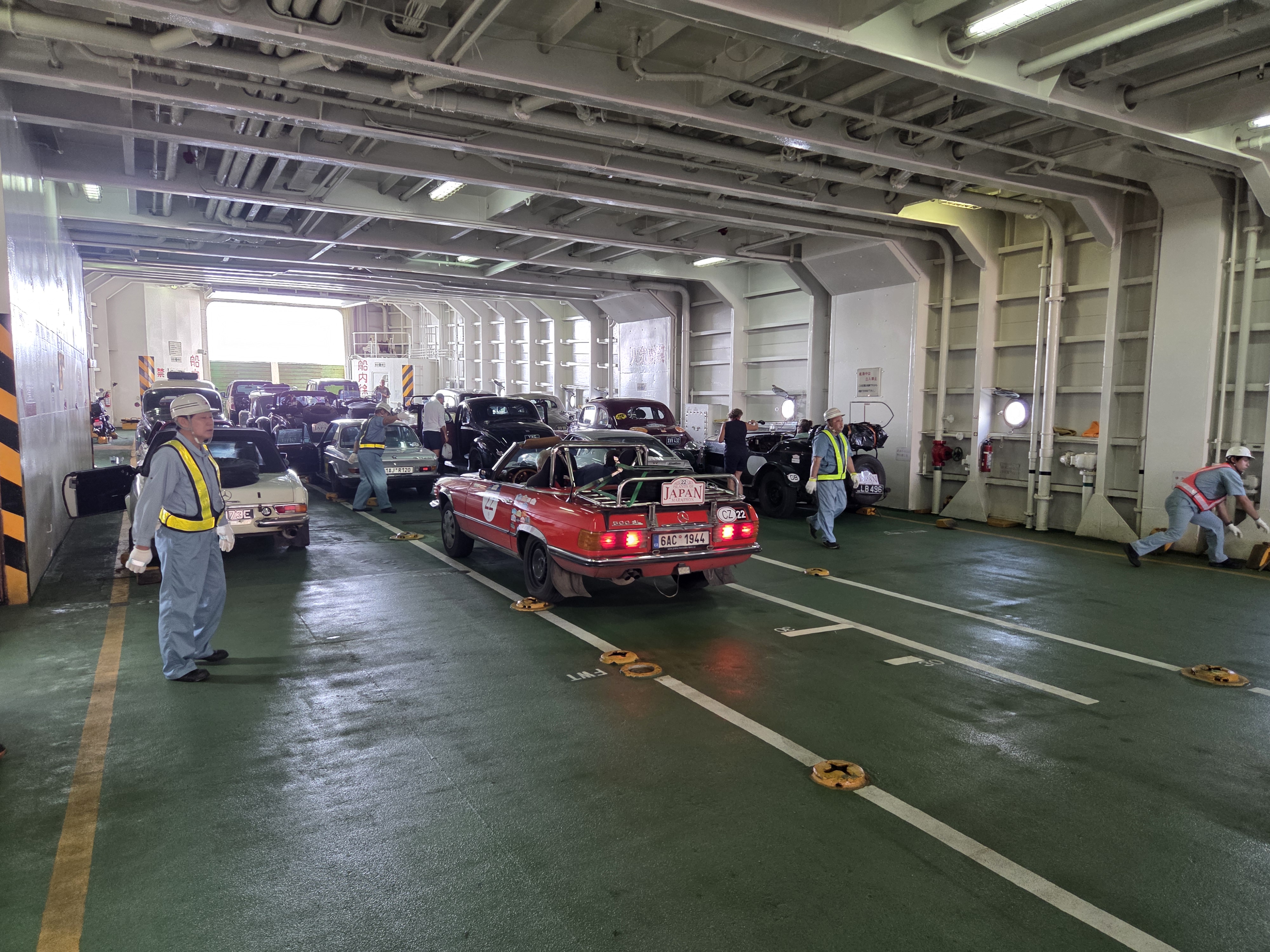 Heute morgen sind wir nach 09:00 losgefahren und haben den rund 90 km langen Weg zum Fährhafen unter die Räder genommen, wo wir gegen 10:30 Uhr ankamen. Die Fähre traf um 11:30 Uhr ein und begann sofort mit dem Entladevorgang. Das ging alles sehr speditiv und machte einen gut organisierten Eindruck. Keine 10 Minuten später konnten wir auf die Fähre fahren und diese legte pünktlich um 12:00 Uhr wieder ab. Pünktlichkeit haben die Japanerinnen und Japaner im Griff!