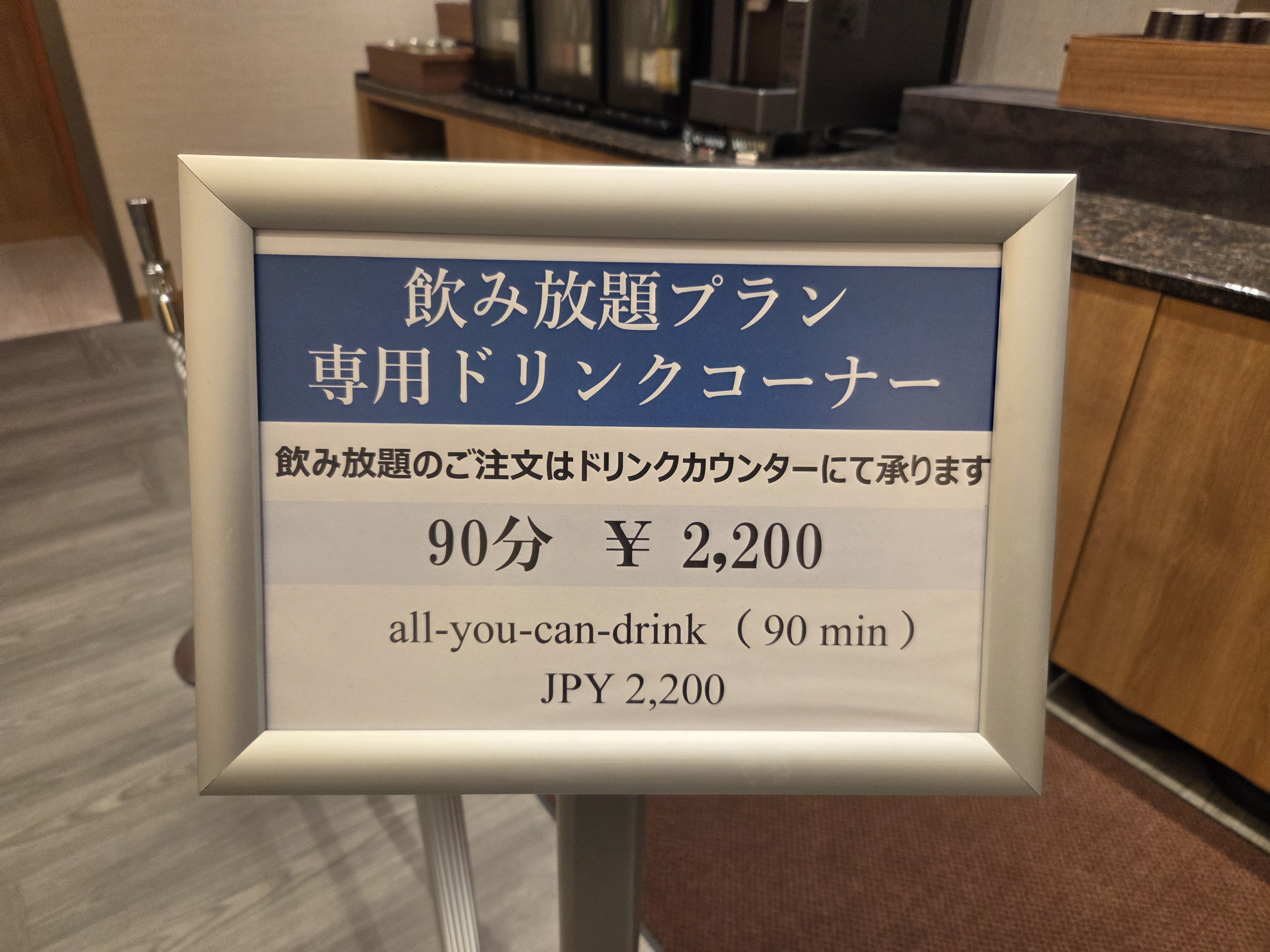 Mein von gestern bekannter stürmischer Kellner bewachte auch heute morgen alle Getränkeautomaten, griff aber nirgends in die Abläufe der Gläser füllenden Meute ein. Heute Morgen habe ich auch die Tafel beim Eingang zur alkoholischen Getränkegasse gefunden, welche ich gestern übersehen hatte, da ich von der falschen Seite her kam. Für 2'200 Yen durfte man so viel trinken, wie man wollte, aber maximal 90 Minuten lang! Ob der Kellner das jeweils mit der Stoppuhr überwacht