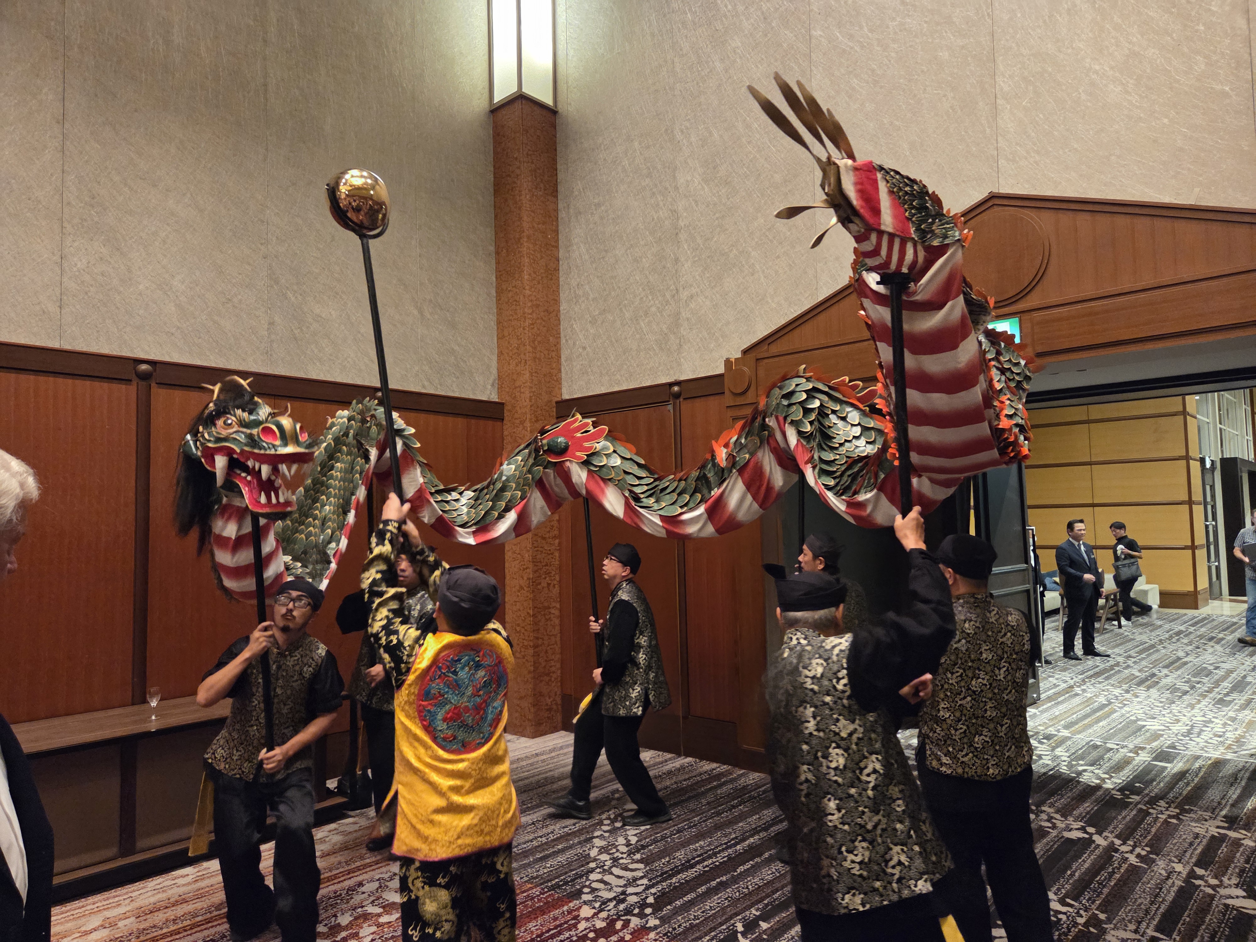 Das Nachtessen und die Preisverteilung waren im üblichen Rahmen, zuvor überraschte uns eine japanische Gruppe, welche uns mit einem eindrücklichen Drachentanz und ziemlich viel Lärm - oder war es einheimische Musik? - beglückte.