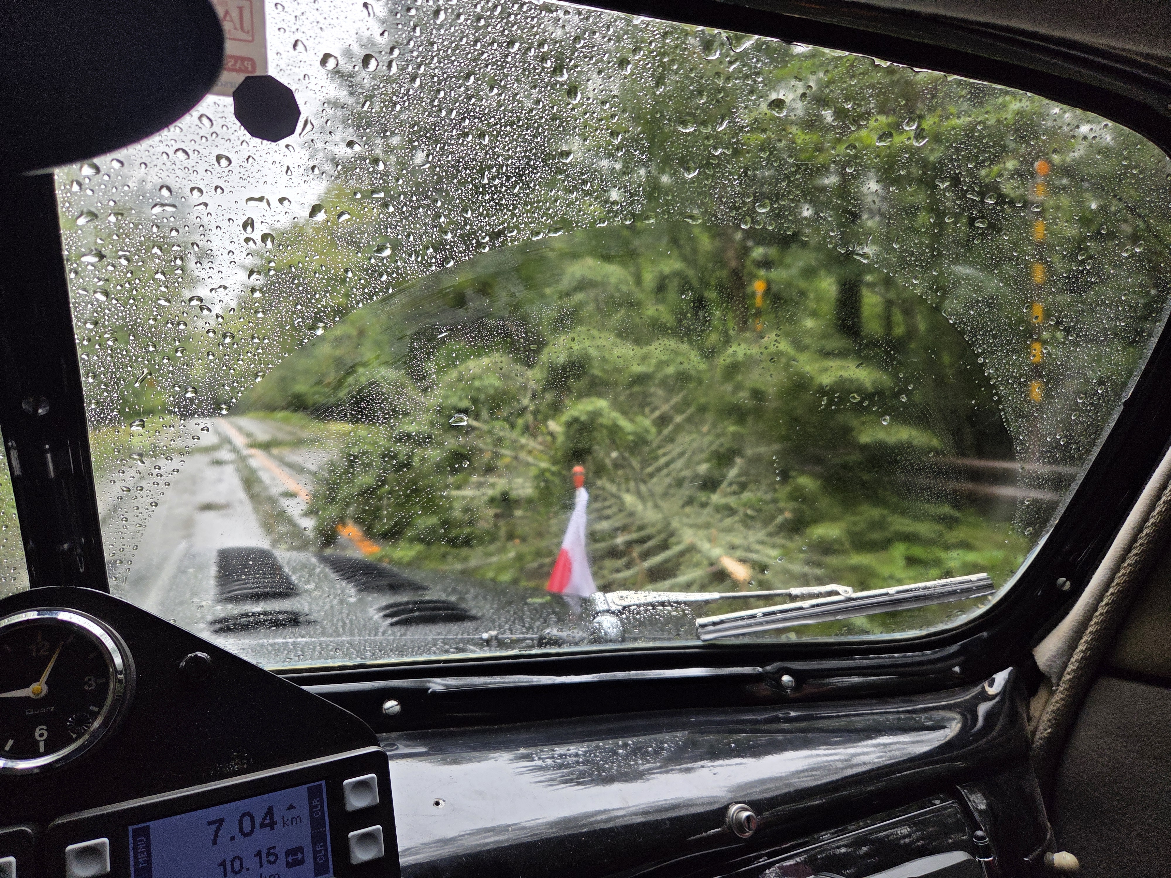 In der Nacht hat es stark geregnet und noch stärker gestürmt - selbst für lokale Verhältnisse - und beides hat den ganzen Tag über nicht aufgehört. Die Strassen waren voll mit weggeblasenem Grünzeug und umgestürzten Bäumen. 'Luigi' mit seinem wenig windschlüpfrigen Erscheinungsbild wurde auf den Strassen hin und her geblasen. Die Spurrinnen in den Strassen waren gut mit Wasser gefüllt und infolge des Fehlens jeglicher Kanalisation mussten immer wieder gewaltige Pfützen be- oder umfahren werden. Wir haben also viel Natur erlebt, aber nur wenig davon gesehen .