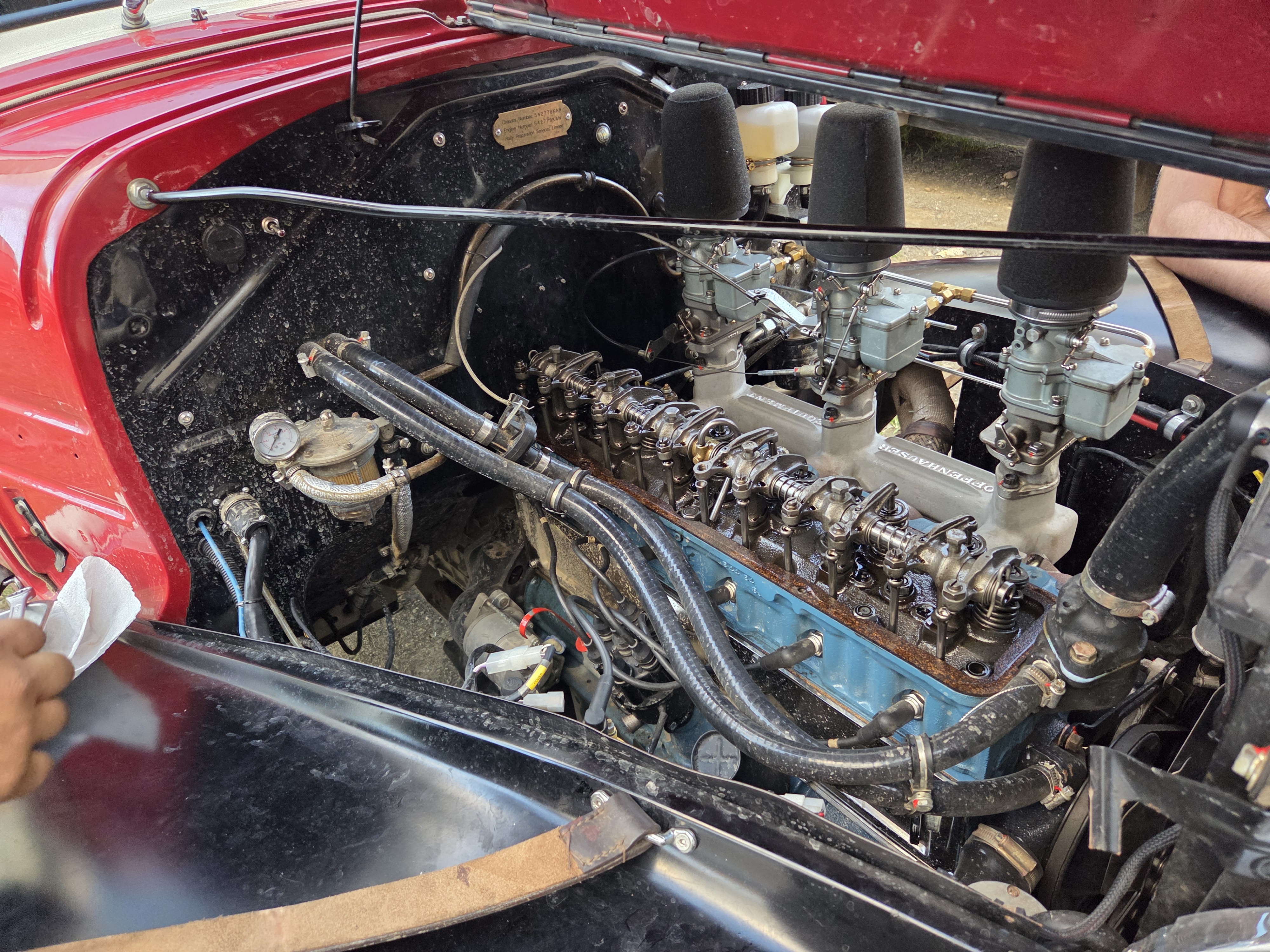 Unser neuer direkter Verfolger fährt exakt das gleiche Fahrzeug in der gleichen Farbe wie wir, sozusagen 'Luigis' Zwillingsbruder. Allerdings ist dieser deutlich mehr aufgemotzt, sowohl vom Motor als auch vom Fahrwerk her. Zudem fährt der Fahrer ausgezeichnet und hat in der Kategorie der Vorkriegsfahrzeuge auf dem Teer alle Rundkurse der letzen Tage gewonnen (auf Gravel nicht ). Auch auf den Regularities werden die beiden Herren - deren Team-Konstellation etwas zu Mutmassungen geführt hat - zunehmend besser, heute haben sie uns 4 Sekunden abgenommen. Wir werden uns warm anziehen müssen, wenn wir unsere Positionen halten wollen, aber das ist ja auch die Herausforderung und der Spass an einer solchen Rallye!