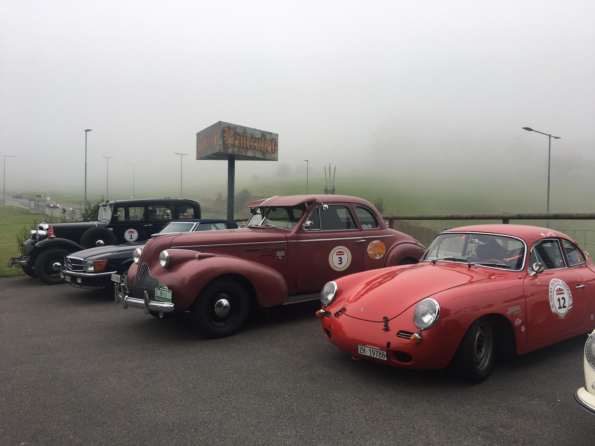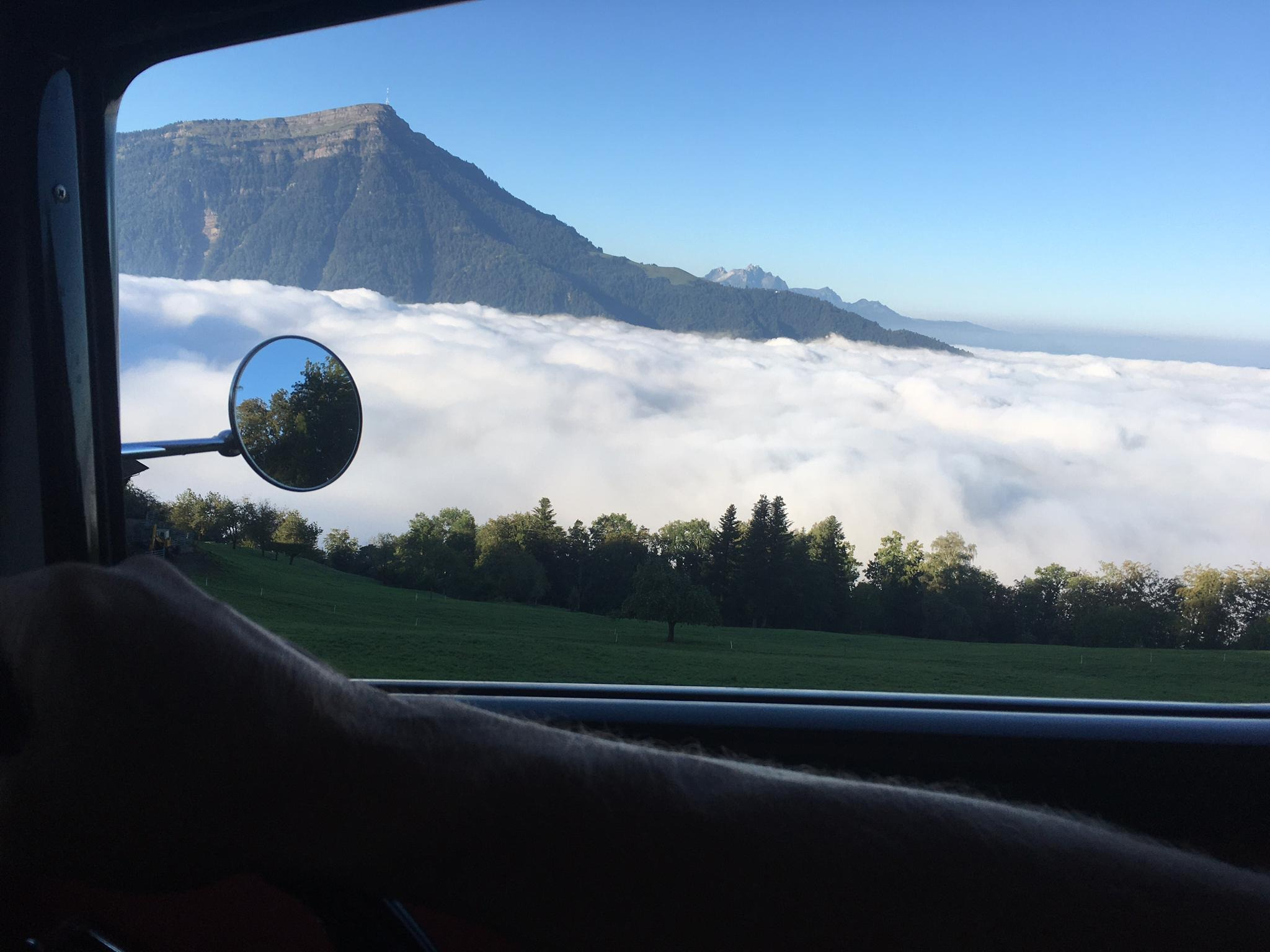 'Isabella' war mit Jahrgang 1932 das älteste Fahrzeug und wir erhielten deshalb die Startnummer 1. Exakt um 08:00 Uhr senkte sich für uns die Startflagge und wir starteten direkt mit der 1. Regularity weiter den Inkenberg hoch. Bald gelangten wir über die Nebelgrenze und der Ausblick war ab diesem Zeitpunkt nur noch traumhaft.