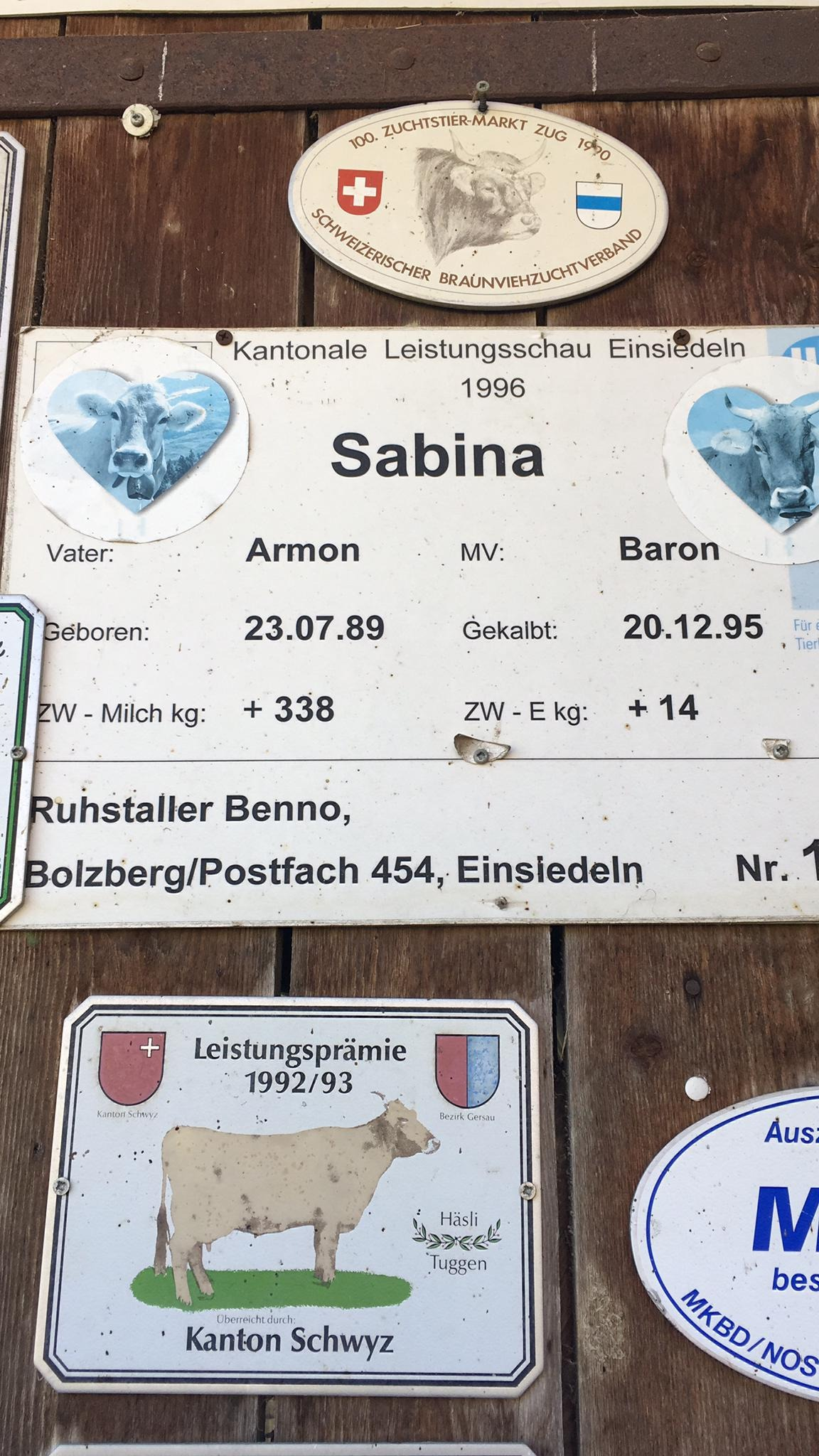 Sie wie wir waren recht ratlos, bis Irene an der Stallwand einen Stammbaum der hofeigenen Milchkühe erspähte. Tatsächlich, da gab es einen Vater Armon und die Tochter hiess Sabina!